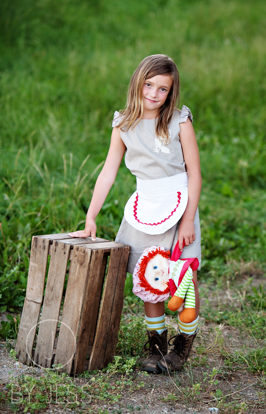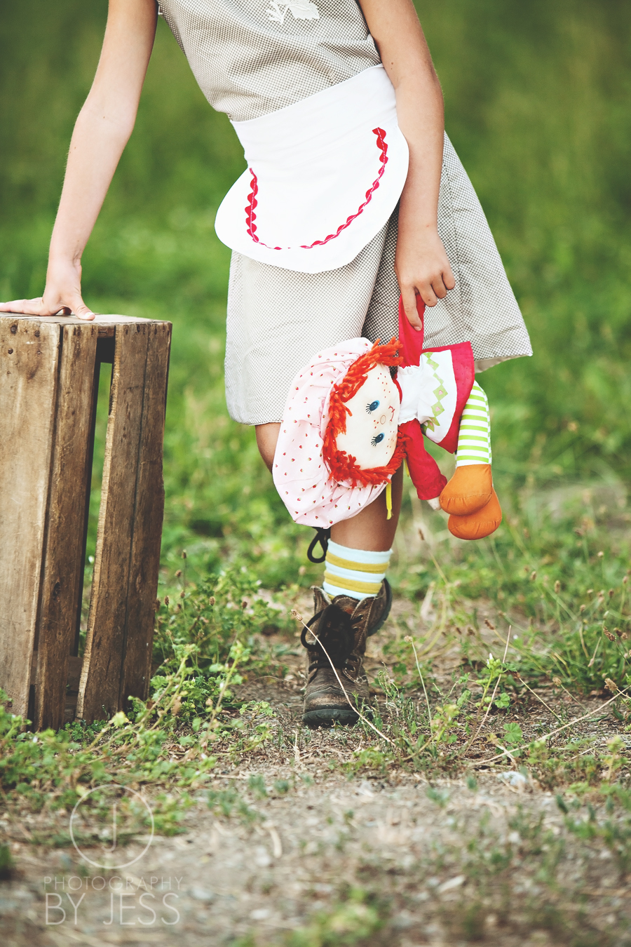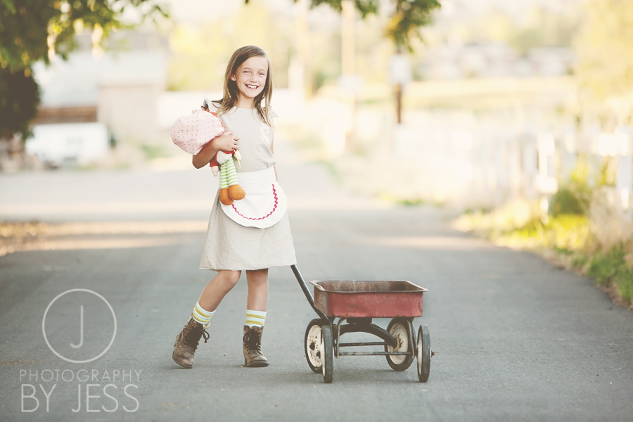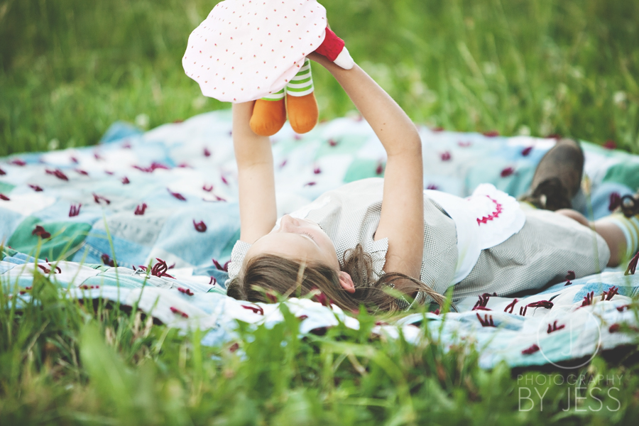 I have this Strawberry Shortcake doll from when I was little. I must have loved her because my whole room was decorated Strawberry Shortcake I even had rainbow shag carpet…COOL! I remember how cool the room was but honestly don’t remember play with dolls when I was young but then again I don’t remember much of my childhood…not sure why that is…some people say that it will haunt me later in life,…we’ll see. So, I basically took the doll and then dressed Elyse. I had my sister in law make the apron to match…she’s the best!