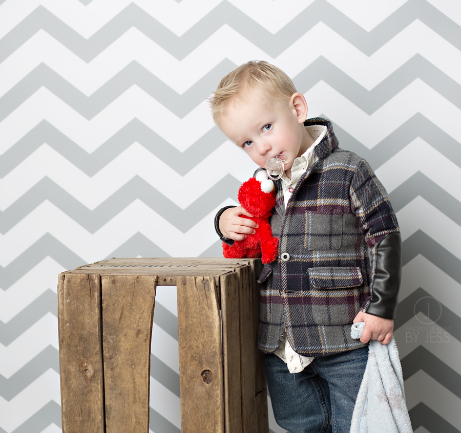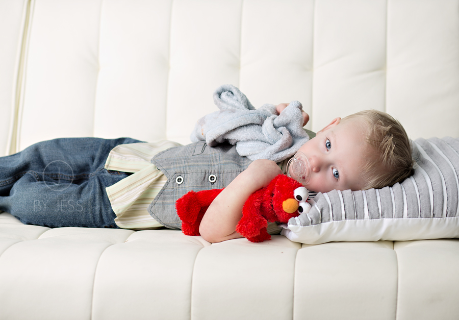 This photo is my favorite of all of them. He has his binky in the mouth upside down, holding onto the corner of his blanket and hanging onto Elmo, his favorite show. He needed all this stuff because Mama Bear came out. After we had our fight 🙂 we snuggled and then got a few more shots, we ended the shoot and he could finally have his treat. The studio has become a fun place to visit…for treats and that’s all that he wanted that’s why he wouldn’t have anything to do with me and the camera.